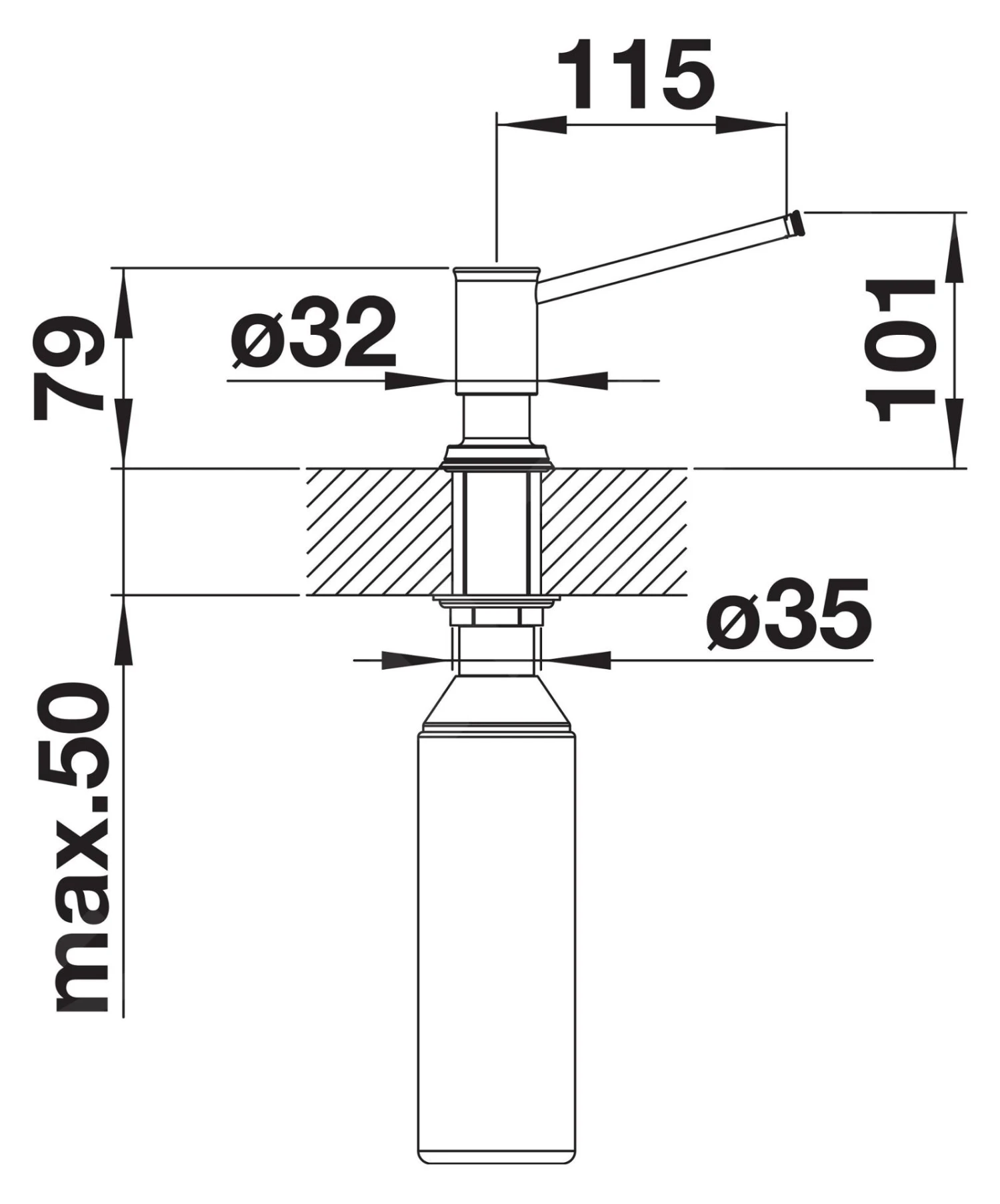 - diámetro de orificio requerido min. 27-35 mm