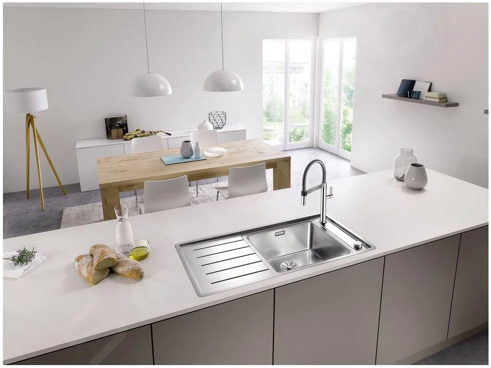- fregadero de un seno con escurridor, fregadero a la derecha