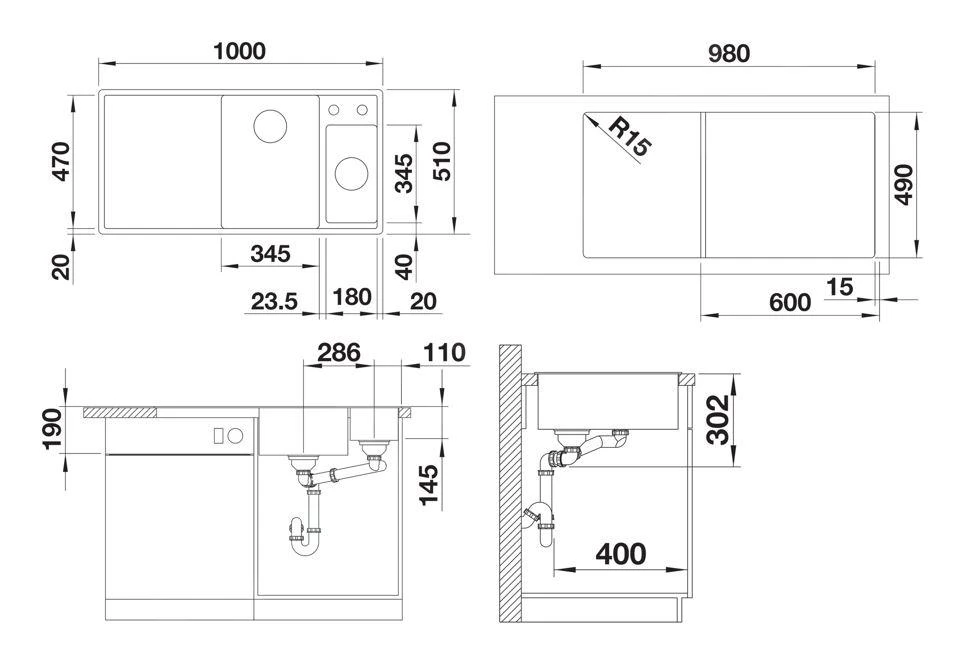 Blanco Metra 5 – Fregadero De Silgranite, 850×490 Mm, Con Control De Desagüe, Negro 525921