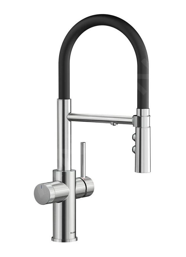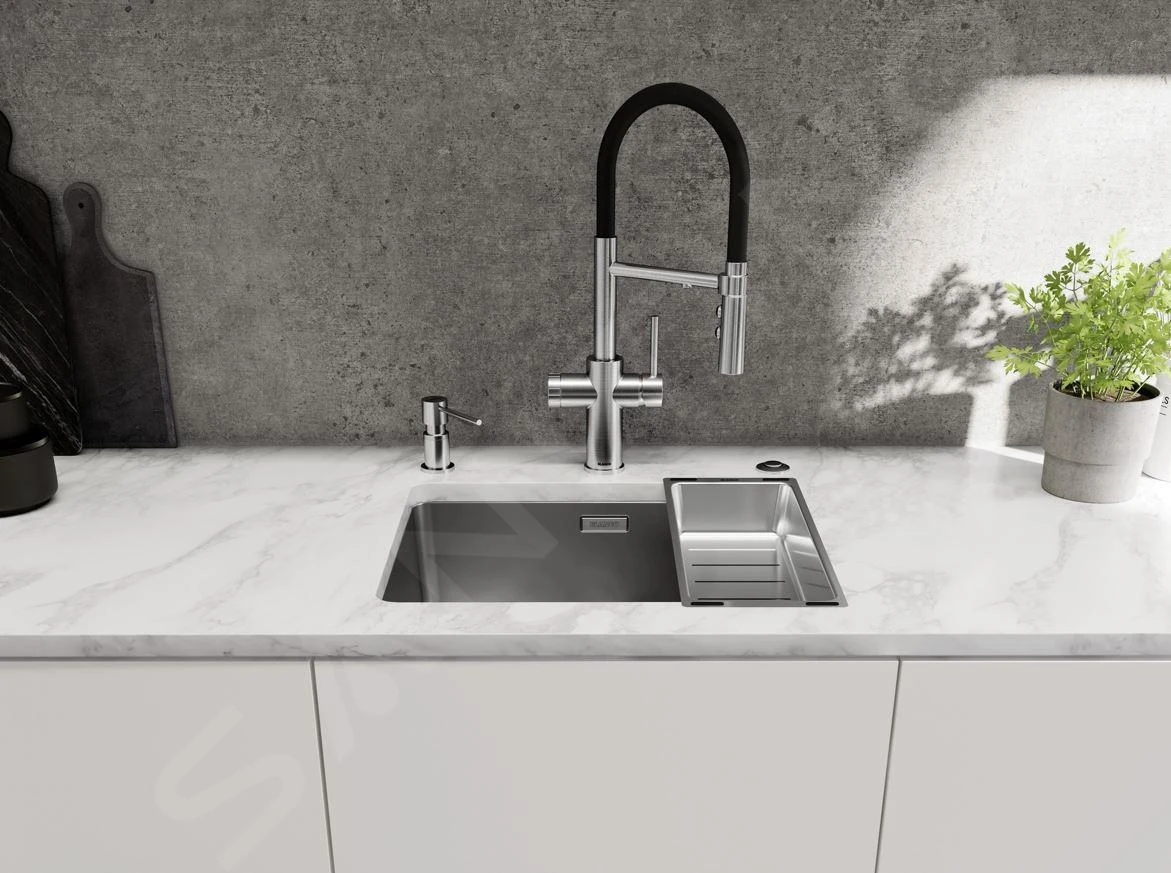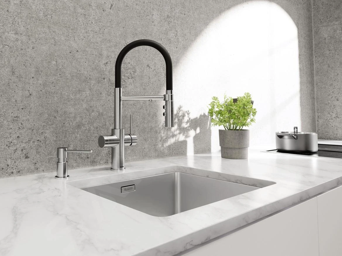 - control monomando: agua fría y caliente a la derecha, agua filtrada a la izquierda
