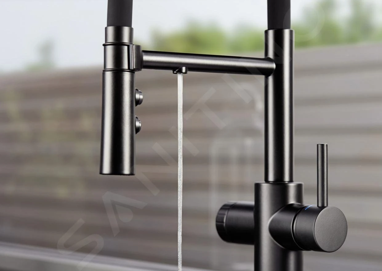 - control monomando: agua fría y caliente a la derecha, agua filtrada a la izquierda