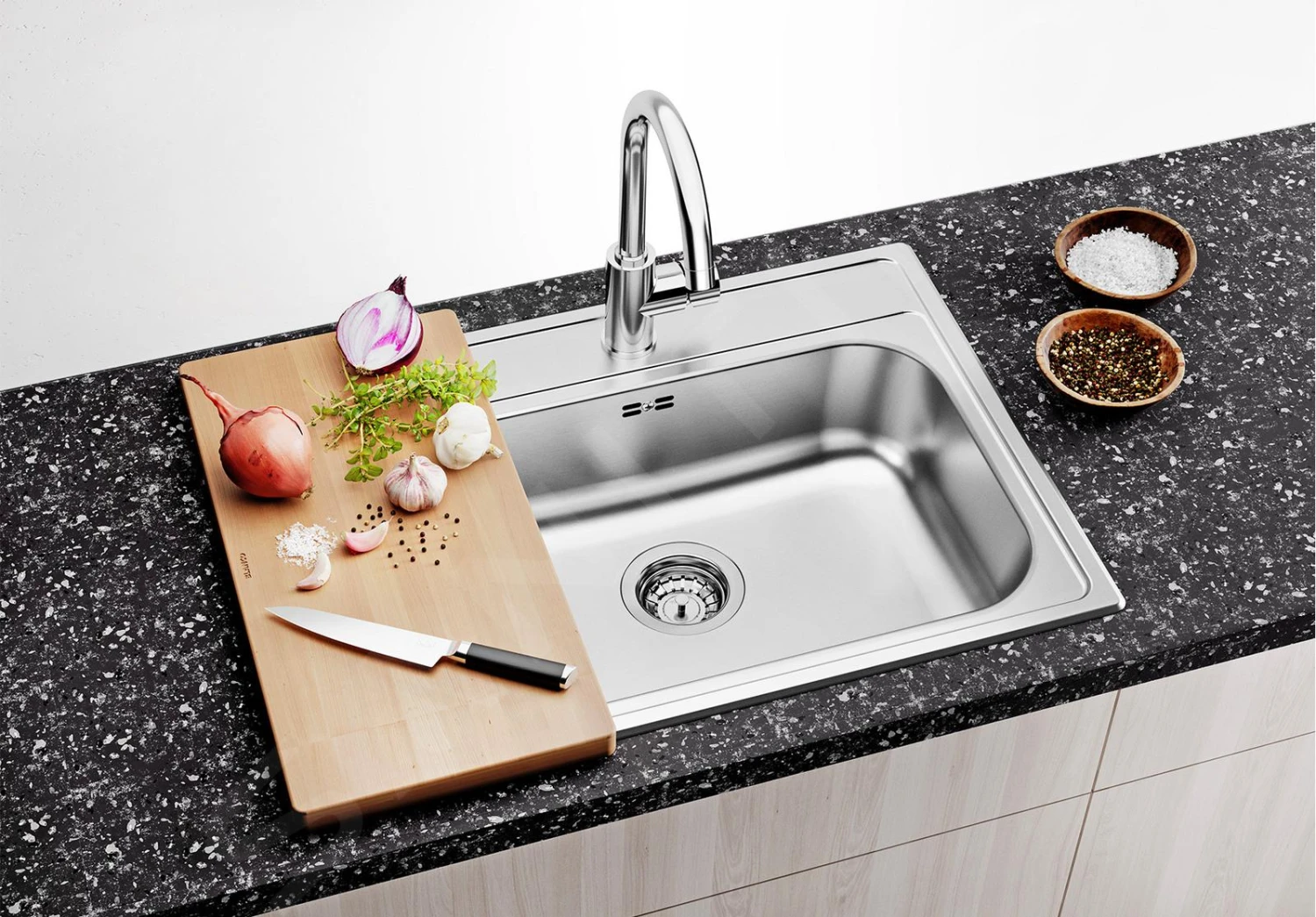 El Blanco Dana es un fregadero de diseño muy sutil y sencillo, por lo que es muy versátil. Por lo tanto, es adecuado no sólo para cocinas grandes, sino también para rincones de cocina o cocinas pequeñas. Encontrará su lugar en una casa, oficina o casa de huéspedes.