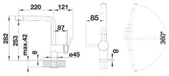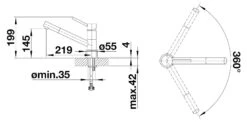 - brazo giratorio, rango de rotación 360°