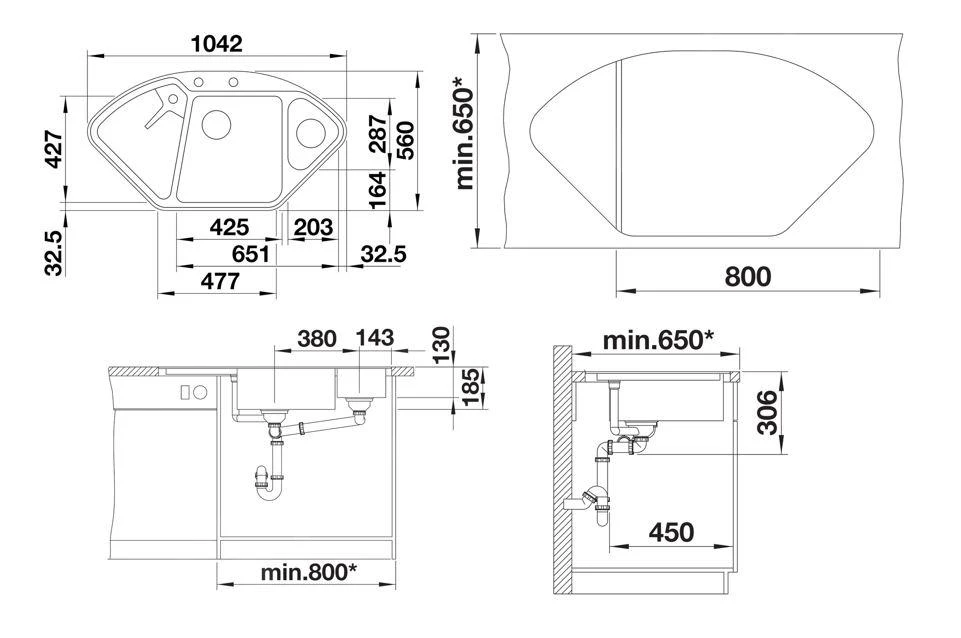 Blanco Solis 500 – Fregadero, 540×500 Mm, InFino, Acero Inoxidable Cepillado 526124