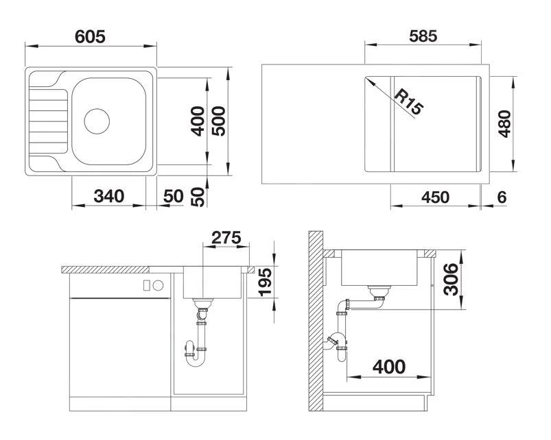 Blanco Solis 500 – Fregadero, 540×500 Mm, InFino, Acero Inoxidable Cepillado 526124