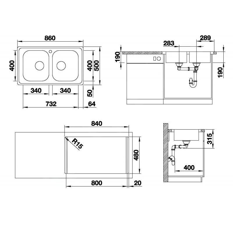 El fregadero Blanco Dinas 8 sin escurridor está diseñado en acero inoxidable cepillado, que tiene un aspecto moderno y espectacular. Es propenso a los arañazos, por lo que hay que evitar el uso del estropajo y los limpiadores abrasivos al limpiarlo. Sus dimensiones totales son de 860 x 500 mm. Cada una de las cubetas mide 340 x 400 mm y su profundidad es de 190 mm.