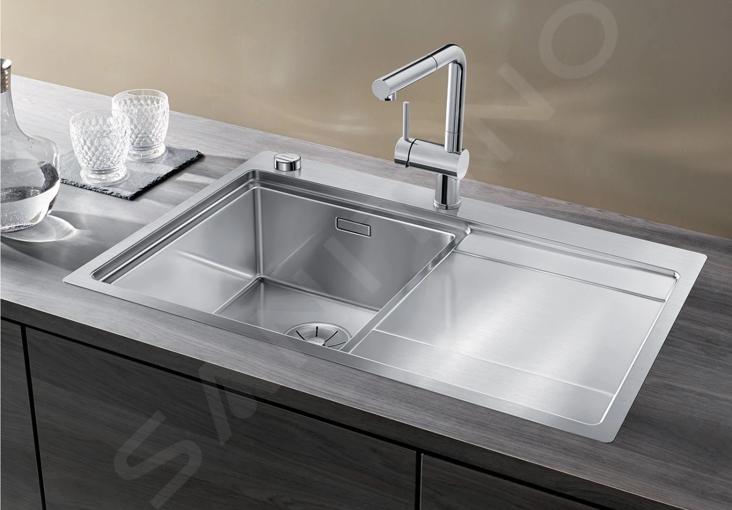 El sistema InFino® sustituye a la válvula de desagüe original con un diseño más agradable y el control excéntrico que facilita el trabajo en la cocina. Ya no tendrás que sumergir las manos en el agua sucia para vaciar el fregadero. El Blanco Divon II está fabricado en acero inoxidable de alta calidad y brillo sedoso. El escurridor está colocado a la derecha y diseñado para su instalación desde arriba o al ras de la encimera en un mueble bajo con una anchura mínima de 450 mm para acompañarlo. Las dimensiones totales del fregadero son 860 x 510 x 196 mm. Tiene dos orificios: uno para el grifo y otro para el control excéntrico de desagüe.