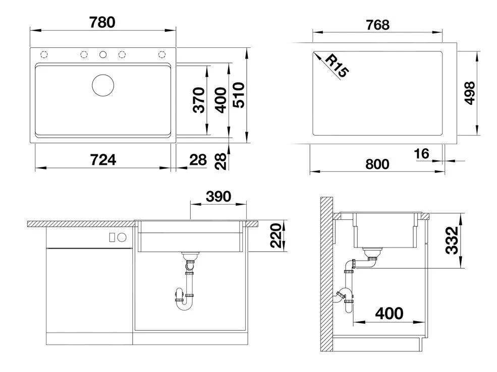 - dimensiones del seno de fregadero 724 x 370 mm