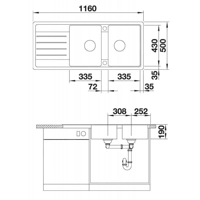 - dimensión total: 1160 x 500 mm
