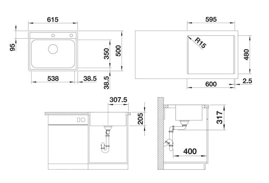 Blanco Solis 500 – Fregadero, 540×500 Mm, InFino, Acero Inoxidable Cepillado 526124