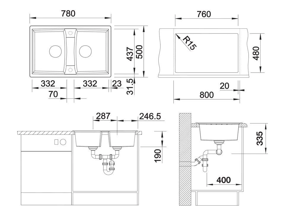 - con control excéntrico de desagüe (a distancia) para 1 seno