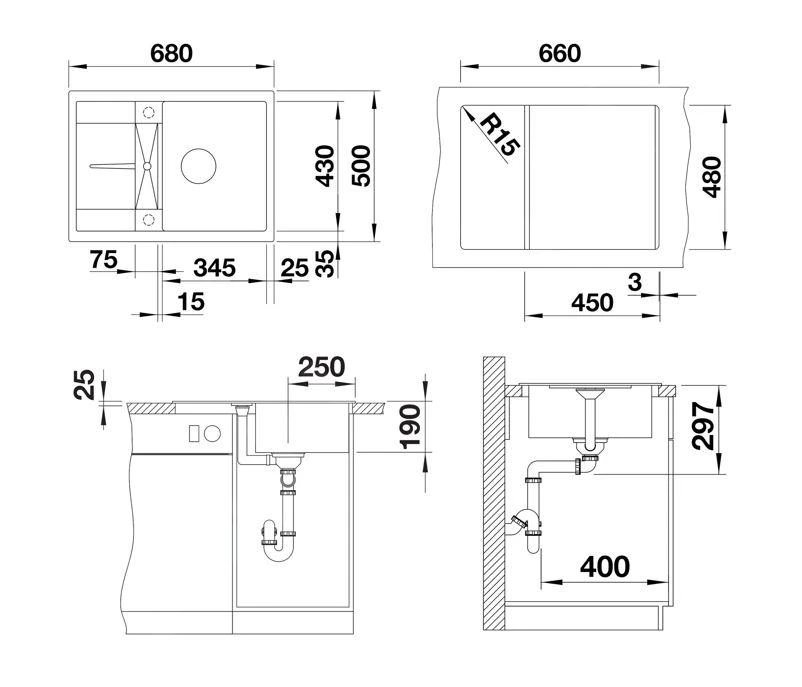 - juego de desagüe y rebosadero con tubo que ahorra espacio
