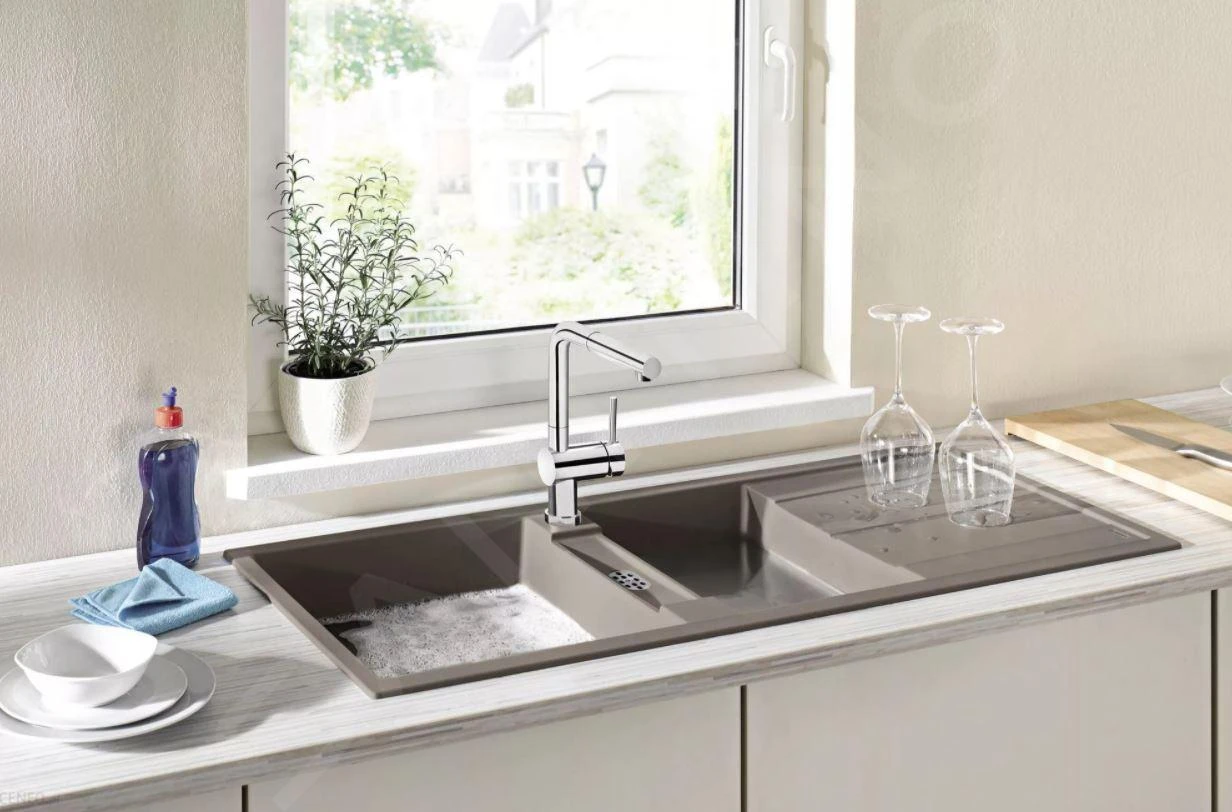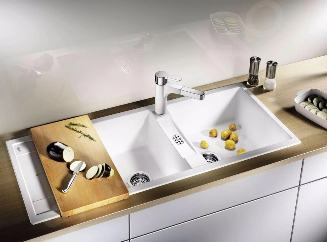 Fregadero de dos senos Metra 8 S, diseño universal reversible