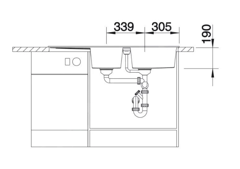 - profundidad de ambos senos: 190/190 mm