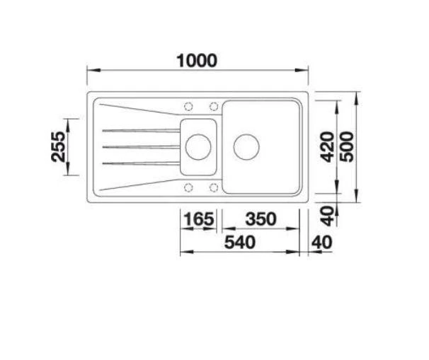 Este fregadero de cocina está diseñado para el montaje superior. Se puede colocar en un mueble bajo con una anchura mínima de 600 mm. El fregadero mide 1000 x 500 mm en total, de los cuales el seno más grande mide 350 x 420 x 190 mm. Las dimensiones de la cubeta son 165 x 255 x 100 mm. Junto con el fregadero, el fabricante también suministra un juego de desagüe con conexión para el lavavajillas, dos válvulas con tamiz para la suciedad con control manual y material de fijación.
