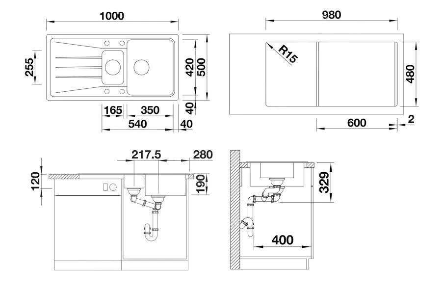 | Opciones | escurridor lado derecho escurridor lado izquierdo sifón de fregadero cubeta |
