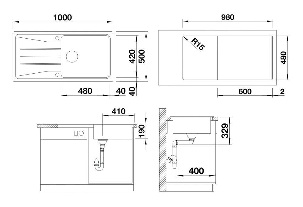 - dimensiones del seno de fregadero 480 x 420 mm