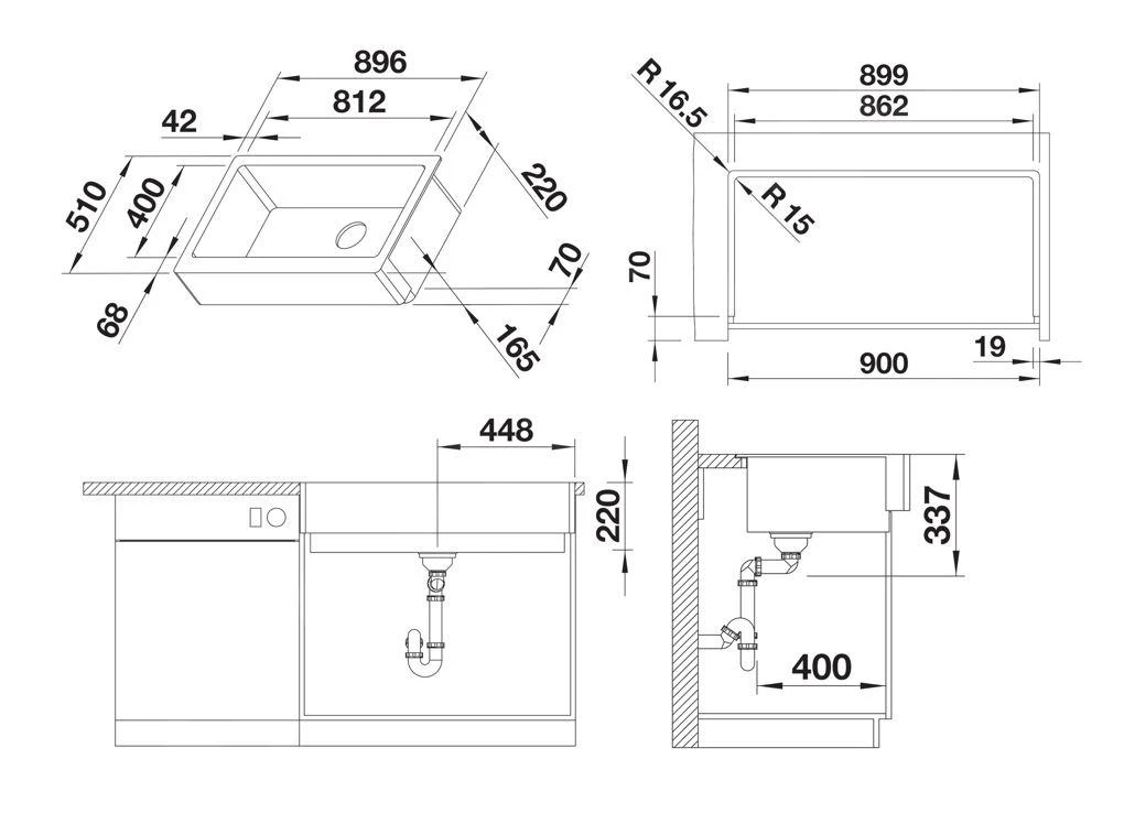 - dimensiones del seno de fregadero 812 x 400 mm