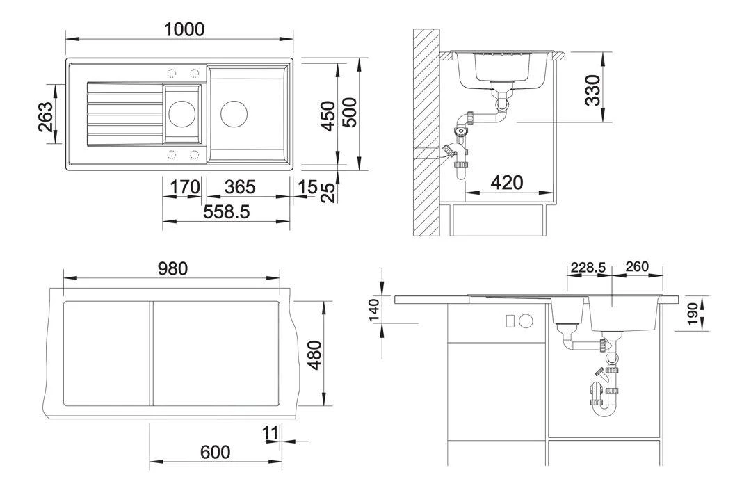 Blanco Zia 6 – Fregadero De Silgranite, 1000×500 Mm, Negro 526021
